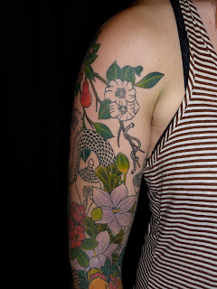 A little while ago we started to color in the pomegranate branch on the top. Almost done with all the flowers on the arm, then on to coloring the weapons.